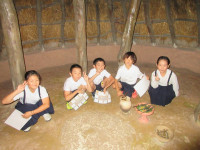 1,2年生が算数や国語の勉強をしています。鍵盤ハーモニカも上手に弾いています。