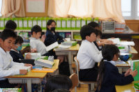 1,2年生が算数や国語の勉強をしています。鍵盤ハーモニカも上手に弾いています。